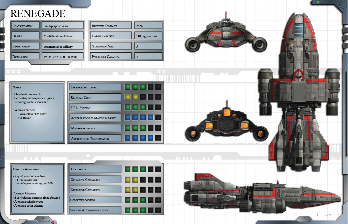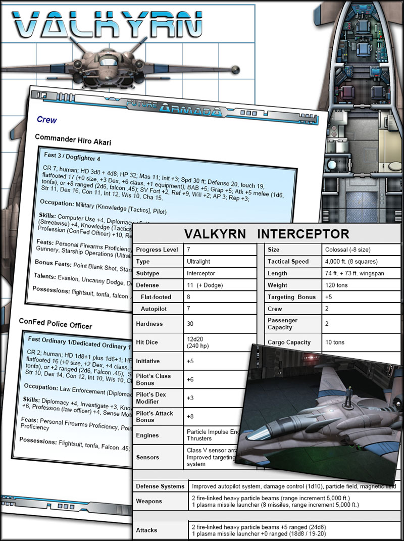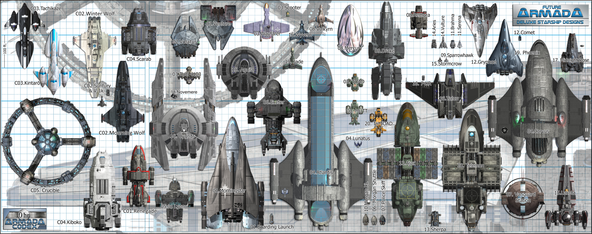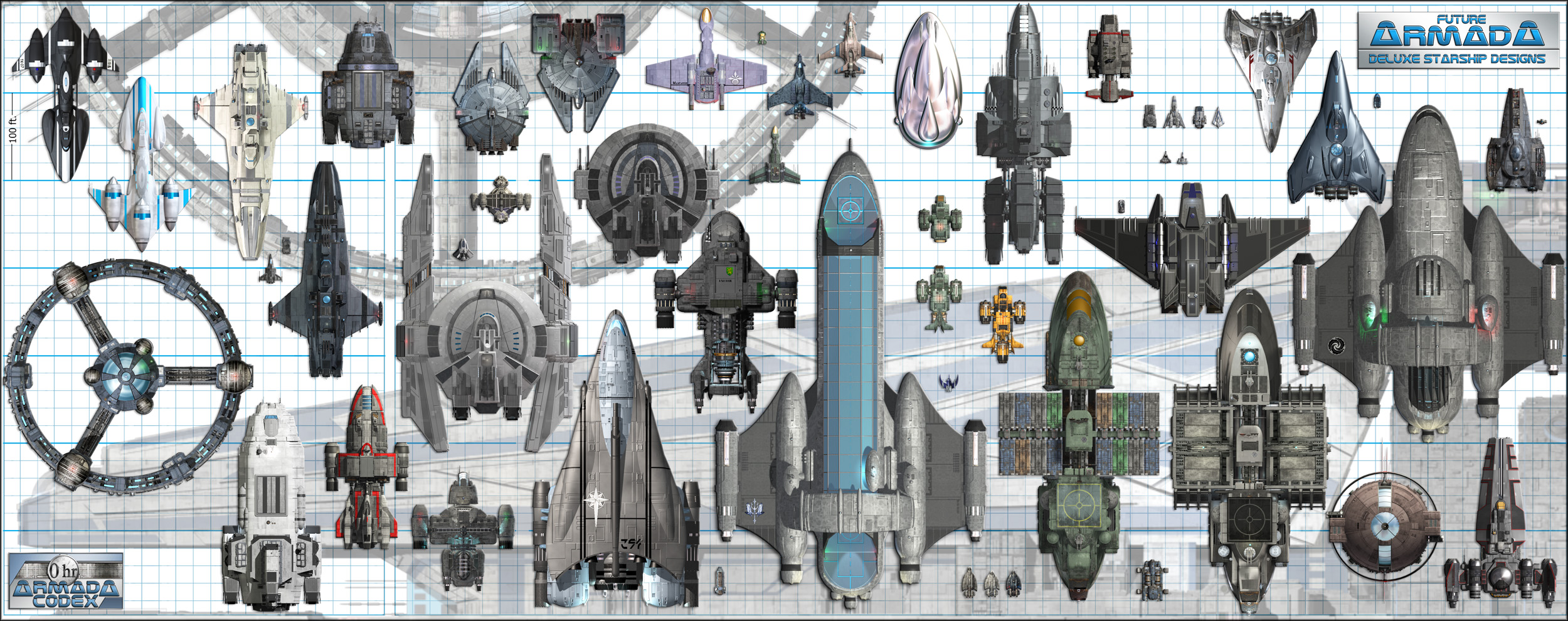 ![]() This ongoing series of electronic books (.PDF Files) presents complete descriptions, deckplans, statistics, and 3D renderings of a wide variety of starships, stations, and support vessels. Future Armada is the initial product line and the Armada Codex is the new series.