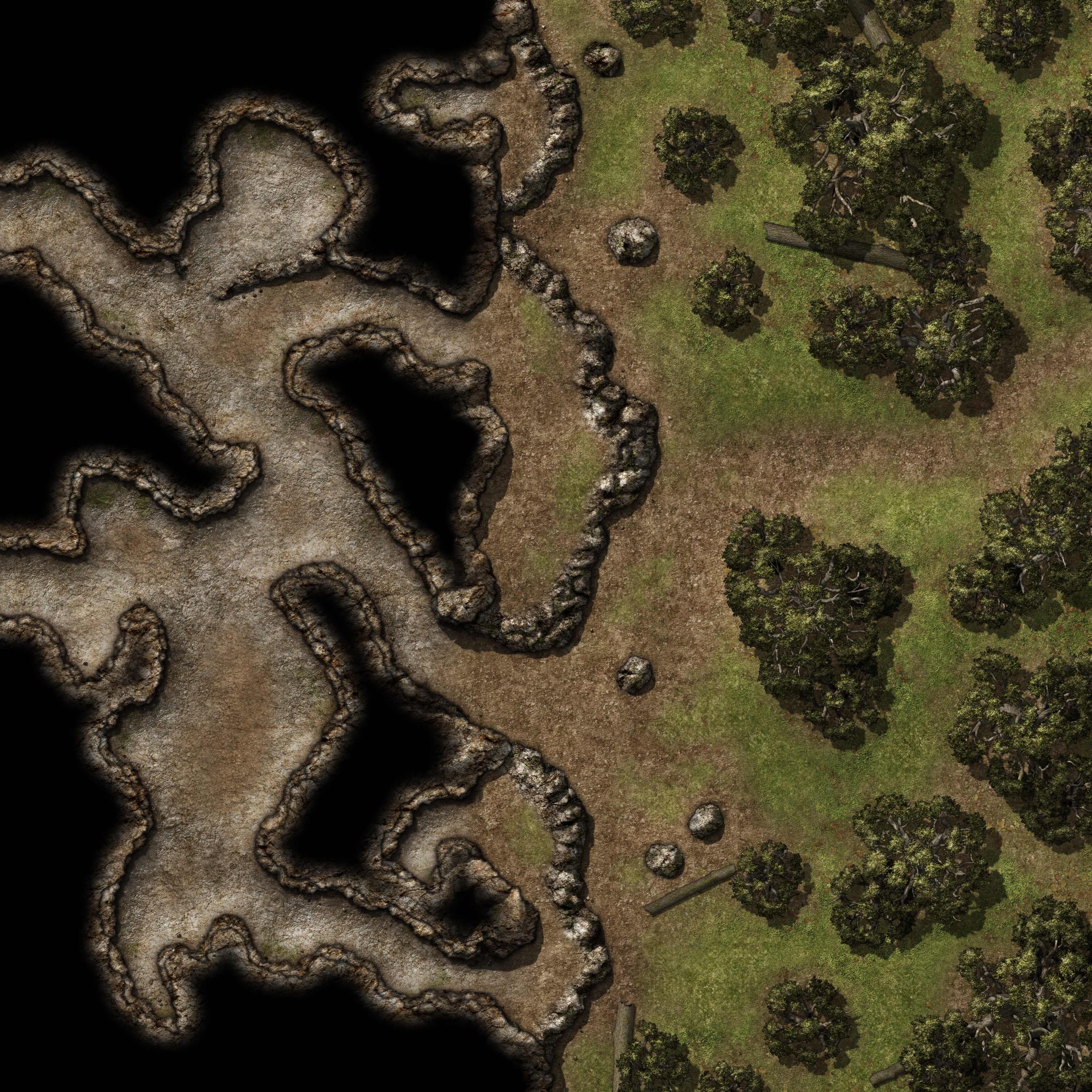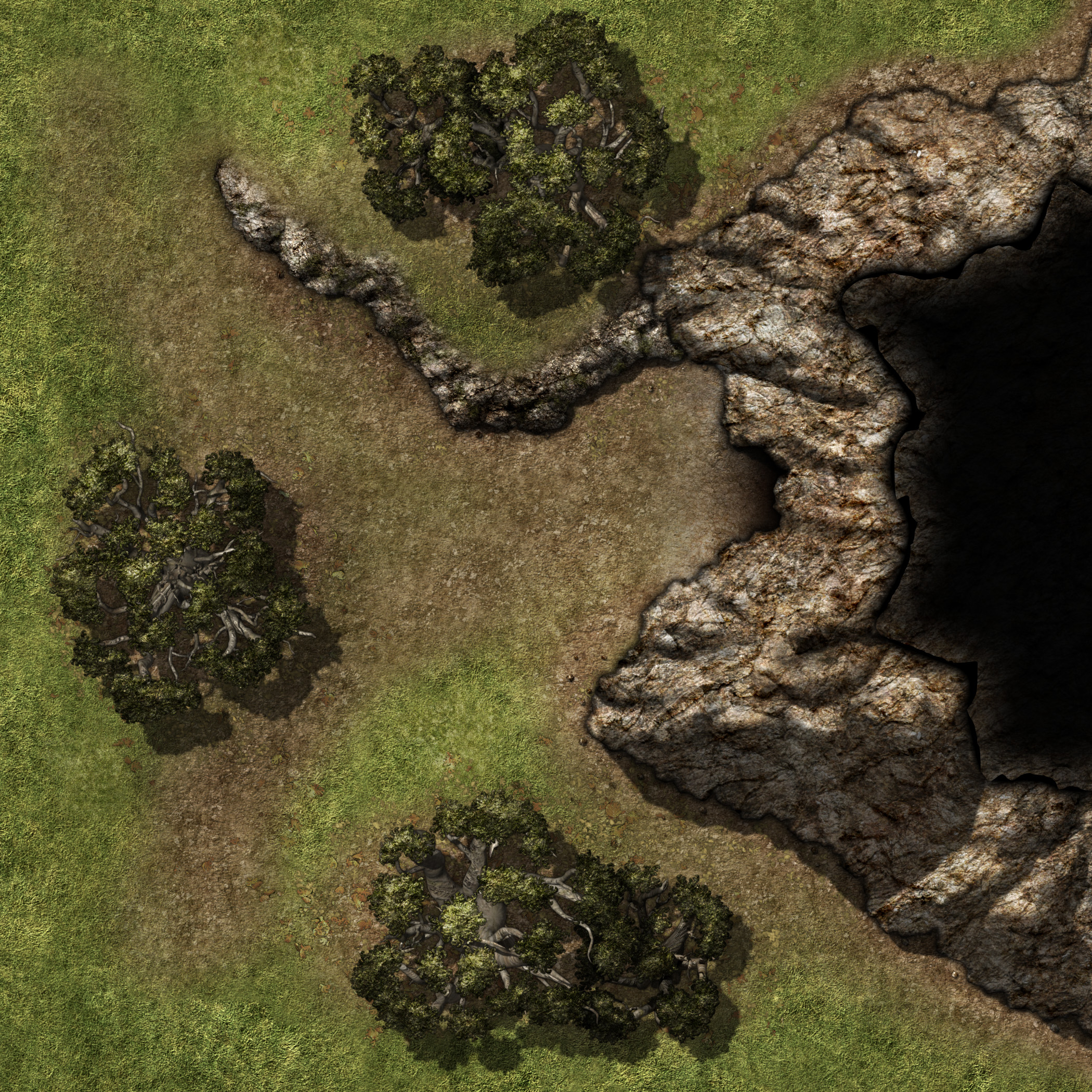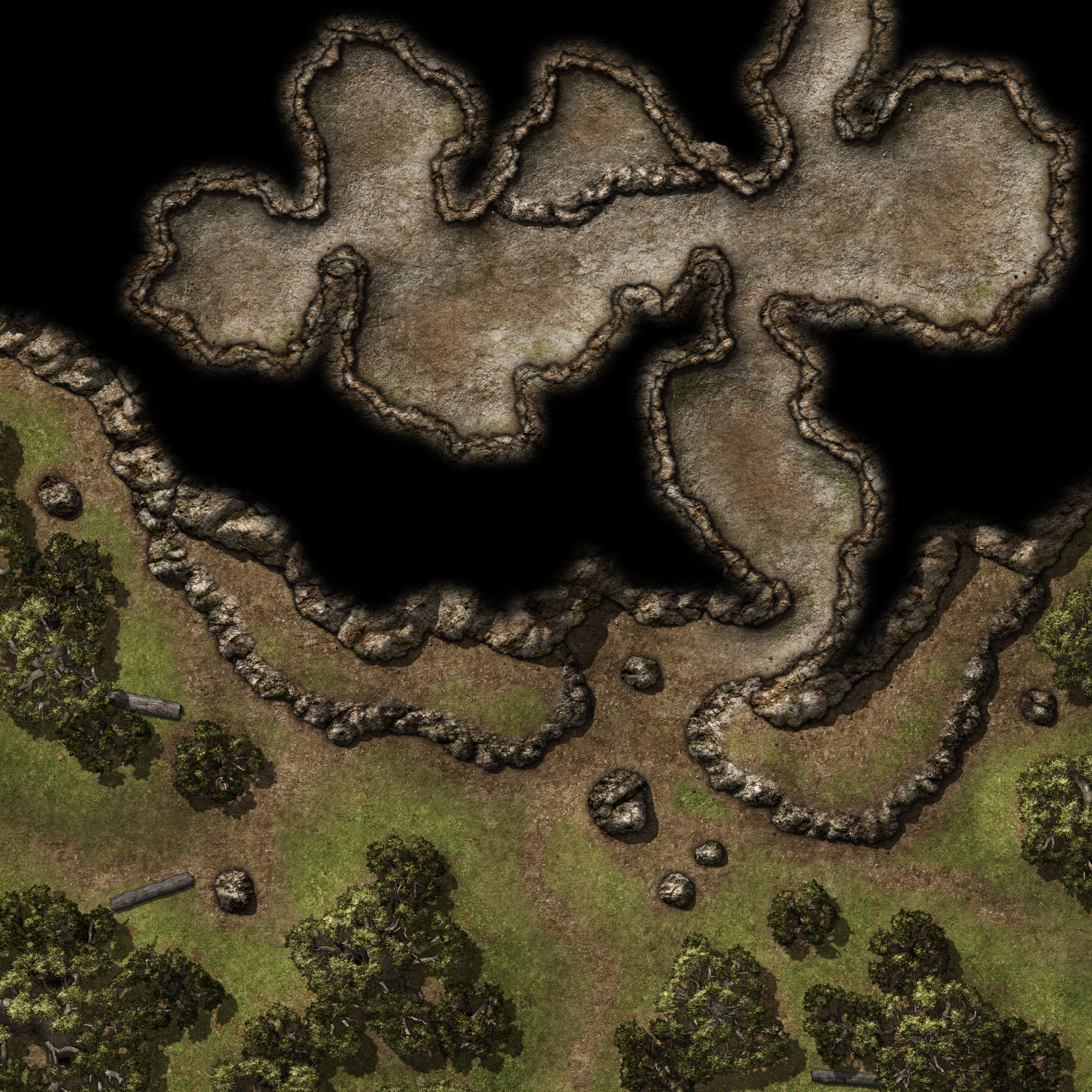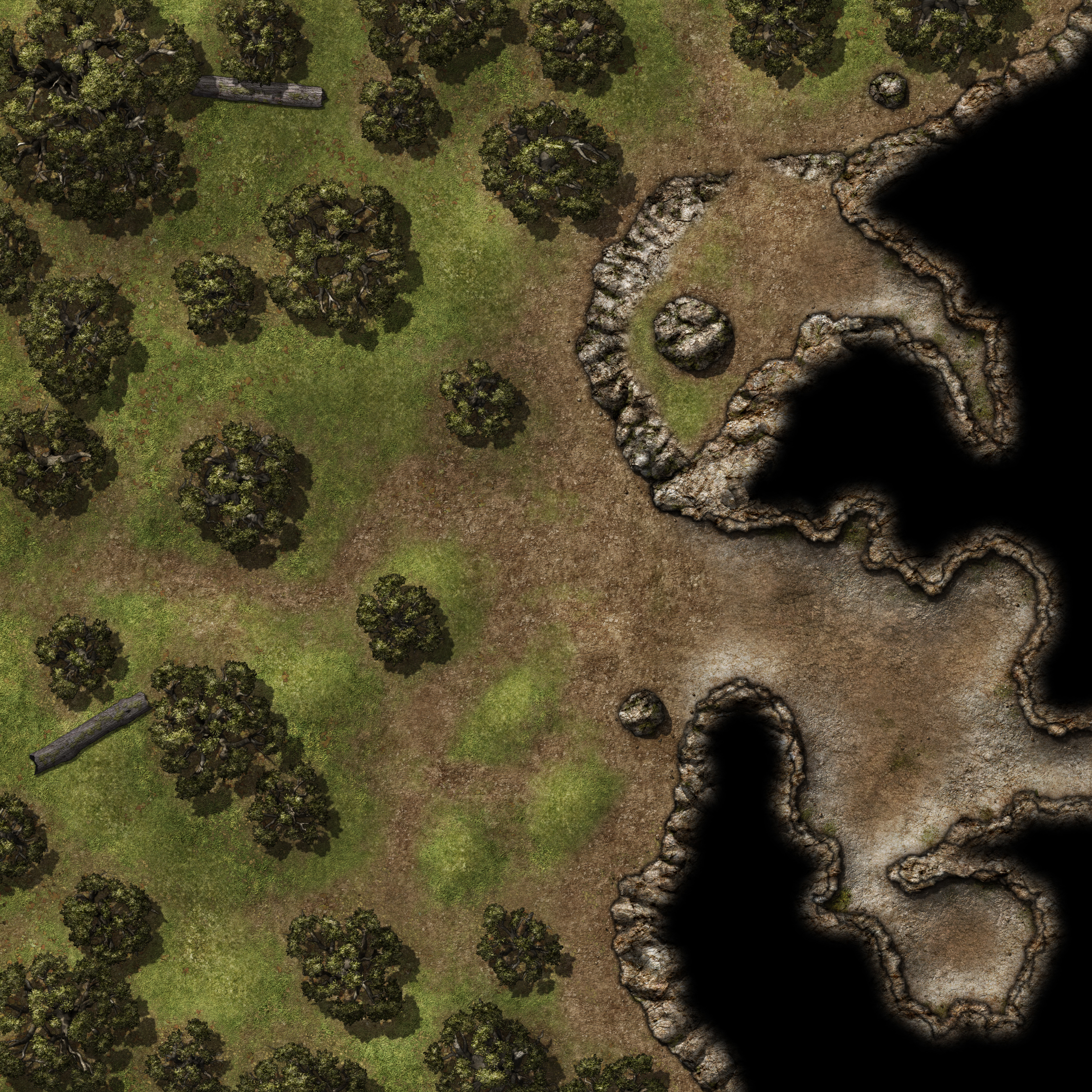 | SvCFE Forest Entrance Lg 4 Open Treeless 30x30[forest,cave,cavern,entrance,mouth,opening,entry,woods,fantasy,map].jpg |